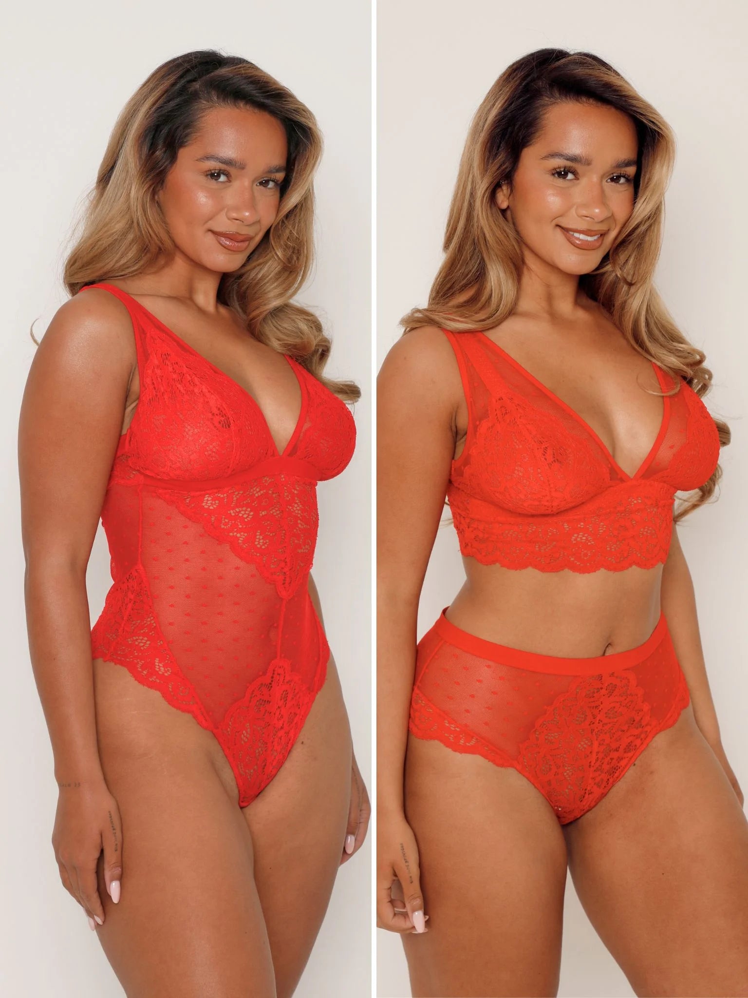 Turn up the heat with the Tutti Threesome : Chilli Pepper. This vibrant red lingerie piece blends sultry style with sculpting design: sheer lace fabric, and adjustable straps combine to enhance your curves and boost your confidence. Whether you’re stepping out for a bold evening or reveling in a private moment, this show-stopping piece will make an unforgettable impression.